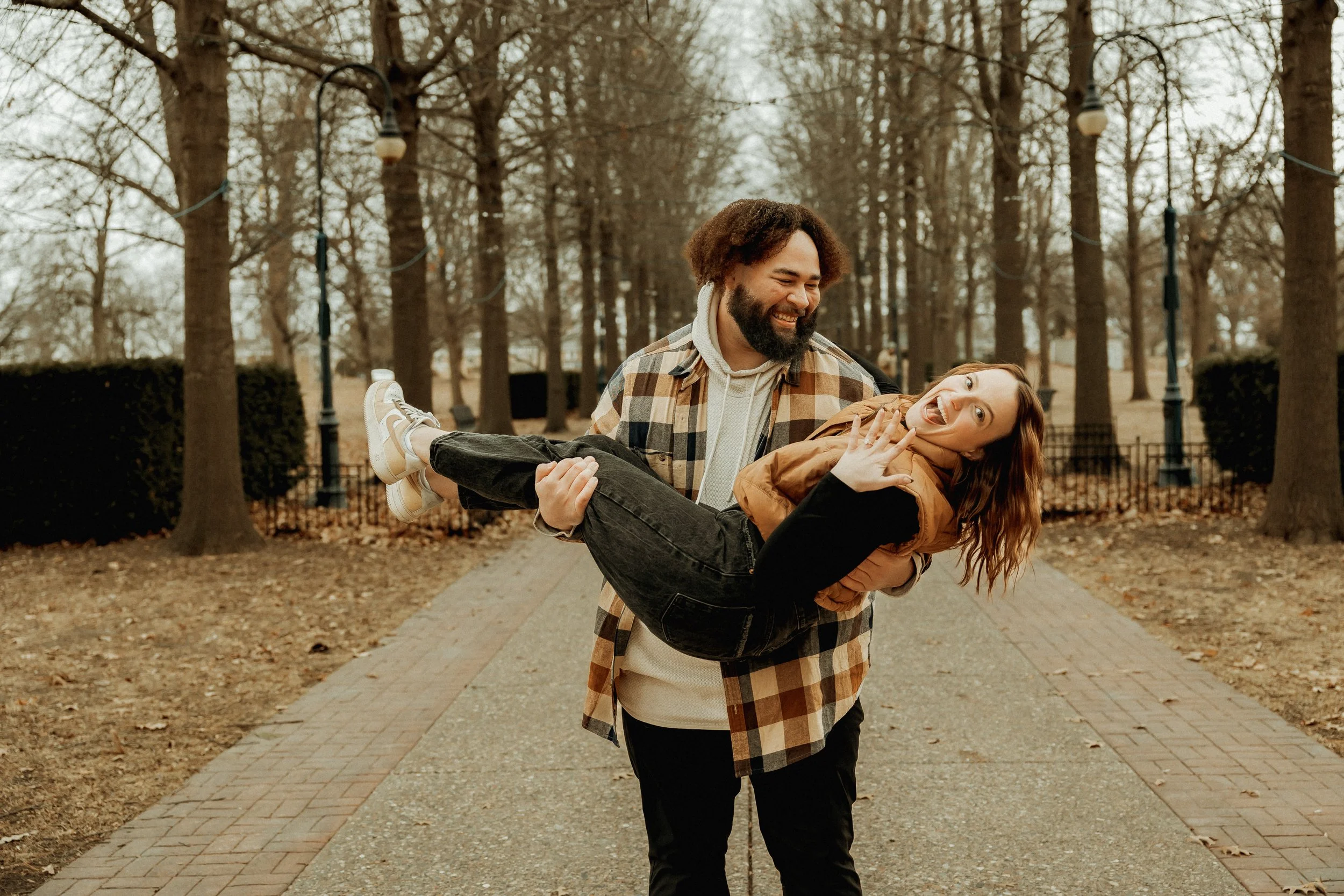 Tucked right into Geneseo, the prairie offers long, muted grasses and tall trees that create a soft, earthy backdrop. It’s perfect for a natural, boho-style session where the wind moves through the grass and adds effortless motion to your photos. The open space and warm light at golden hour give everything a calm, timeless feel. A sunset silhouette among the tall grass is especially beautiful and understated. Jessica Smith Visual Arts loves using natural light here to create images that feel organic, emotional, and true to you.Scott county Park (Davenport, IA): For a more secluded, forest-like setting,Park’s trails and wooded areas provide a tranquil backdrop. The earthy tones of the trees and trails complement mustard or olive dresses, creating a grounded, organic feel. This spot is great for candid shots of you walking hand-in-hand with your partner, embracing the natural surroundings. Jessica Smith Visual Arts can direct you to the best spots for intimate, relaxed poses.